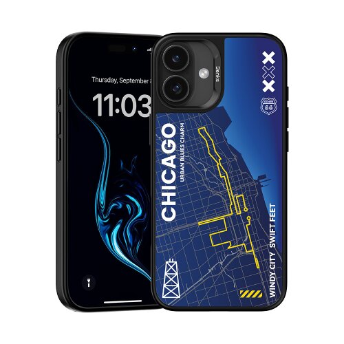 Puzdro Benks Dynamic City Magsafe iPhone 16, vzor Chicago – modré