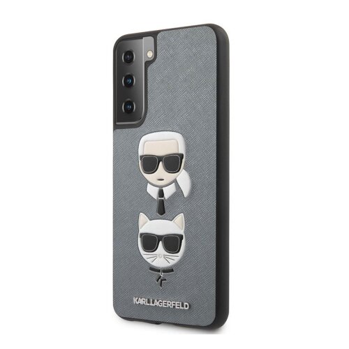 Puzdro Karl Lagerfeld KLHCS21MSAKICKCSL Saffiano K&C Heads Samsung Galaxy S21 Plus – strieborné