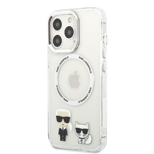 Puzdro Karl Lagerfeld Magnetic Karl and Choupette iPhone 13 Pro – transparentné