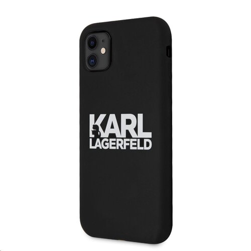 Puzdro Karl Lagerfeld KLHCN61SLKLRBK Stack biele Logo iPhone 11, silikónové – čierne