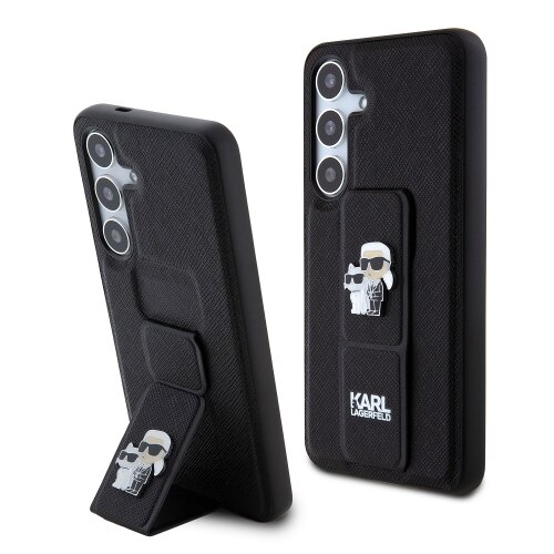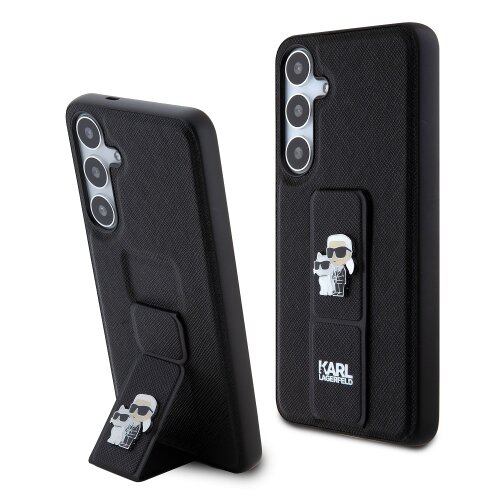 Karl Lagerfeld Saffiano Grip Stand Metal Logo Zadní Kryt pro Samsung Galaxy S24+ Black