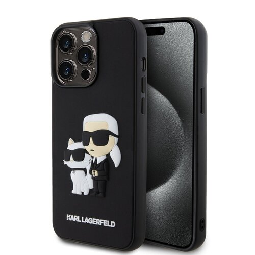 Puzdro Karl Lagerfeld 3D Rubber Karl and Choupette iPhone 15 Pro Max – čierne