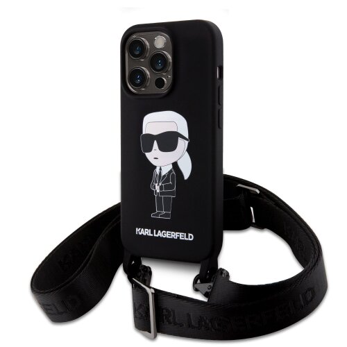 Karl Lagerfeld Liquid Silicone Crossbody Ikonik Zadní Kryt pro iPhone 15 Pro Max Black