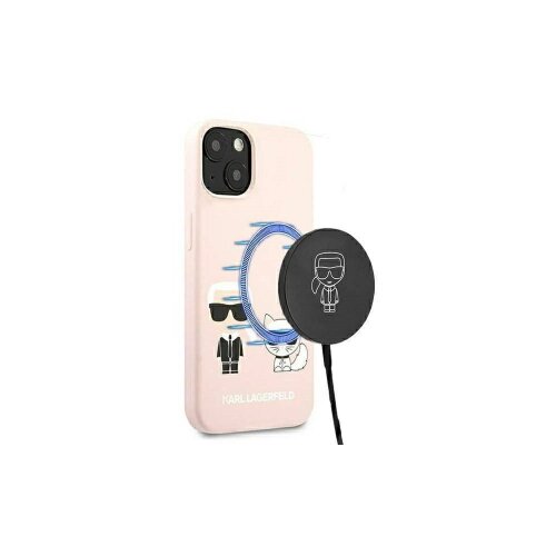 Puzdro Karl Lagerfeld IPhone 13 Pro Max KLHMP13XSSKCI Karl & Choupette Magsafe, silikónové – ružové