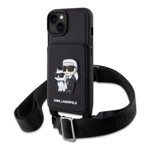 Puzdro Karl Lagerfeld Saffiano Crossbody Karl and Choupette NFT iPhone 14 Pro – čierne