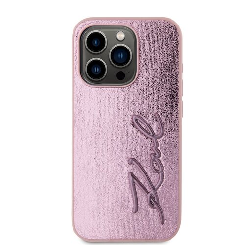 Karl Lagerfeld Wrinkled PU Signature Logo Zadní Kryt pro iPhone 15 Pro Pink