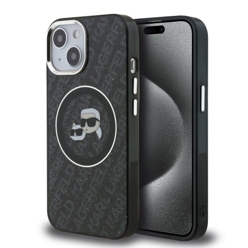 Karl Lagerfeld IML K&CH Heads Repeated Logo MagSafe Zadní Kryt pro iPhone 15 Black