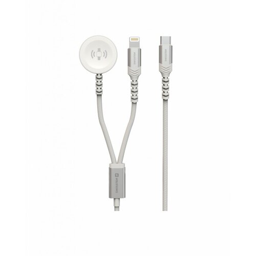Dátový kábel Swissten 2v1 USB-C / Lightning a Apple Watch 1,2m Magnetický Biely
