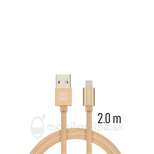 Lightning (8pin) kábel Swissten opletený, 2M – zlatý