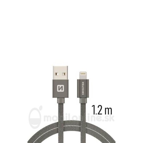 Lightning (8pin) kábel Swissten opletený, 1.2M – sivé