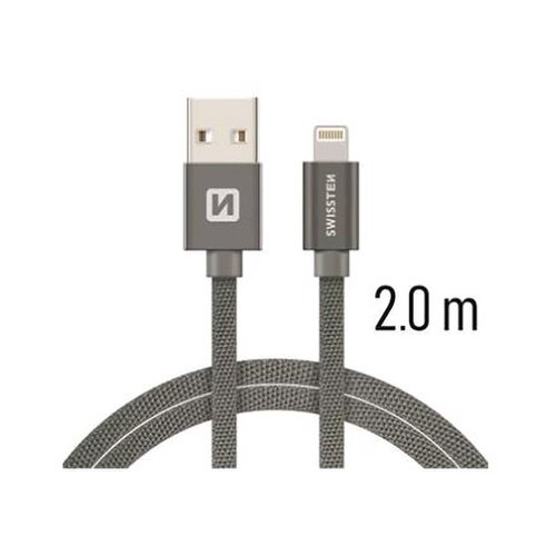 Lightning (8pin) kábel Swissten opletený, 2M – sivé