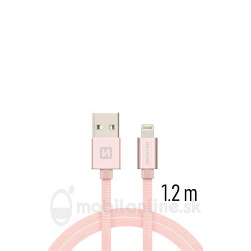 Lightning (8pin) kábel Swissten opletený, 1.2M – ružovo-zlaté