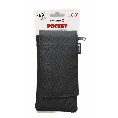 Látkové pouzdro SWISSTEN POCKET o velikosti 6,8" s kapsou na smartphone a bezpečnostní kapsou na zip. Baleno v blistru SWISSTEN.