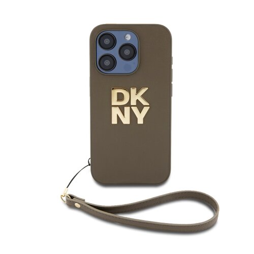 DKNY PU Leather Stack Logo Wrist Strap Zadní Kryt pro iPhone 14 Pro Green
