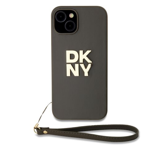 DKNY PU Leather Stack Logo Wrist Strap Zadní Kryt pro iPhone 15 Pro Max Pink